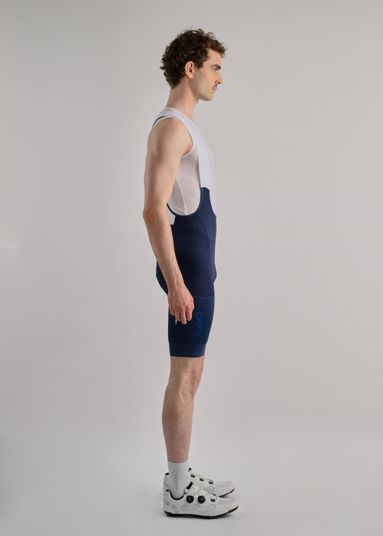 Drft Pro Bib Shorts offers comfort and support with compressive 8020 Lycra®️ and breathable DelonStripe fabric, perfect for warm rides. A high-density foam chamois with male specific cut relieves pressure. While breathable straps and silicone leg grippers ensure a secure, stay-put fit. It has seamlessly integrated cargo pockets for extra storage.